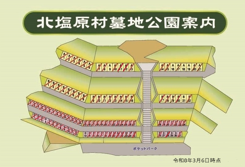 ※高さ2.5m以下で自由な墓石を設置可能な区画です。 - 規格墓所(3平方メートル)5区画(うちC区画:0、D区画:5)