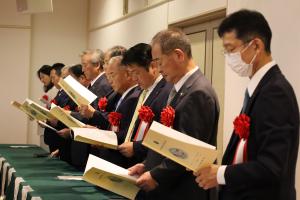 式典には、国県議会議員、国県等の関係機関、東京都杉並区、山形県米沢市、山形県上山市、沖縄県東村、南相馬市、大玉村、新潟県小千谷市、群馬県東吾妻町、静岡県南伊豆町、山梨県忍野村などの交流自治体や近隣自治体の首長、村内外の関係機関の代表や委員の皆さまにご出席いただきました。