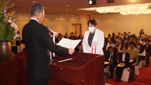 式典では、ロゴマーク考案者の山口さんが表彰されました。